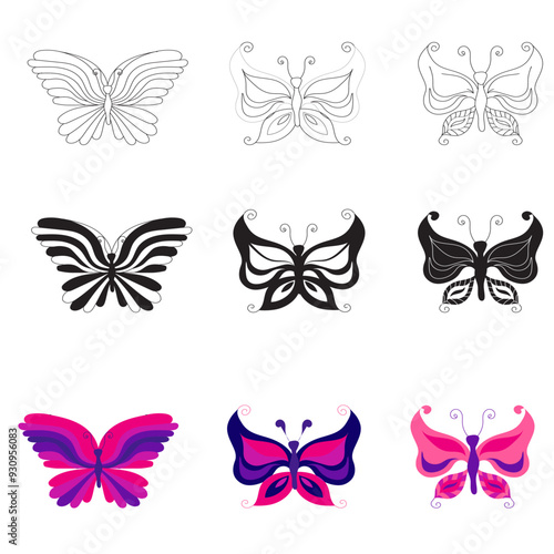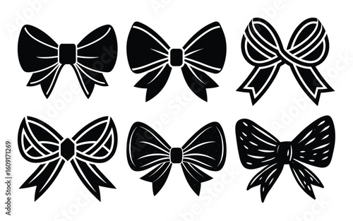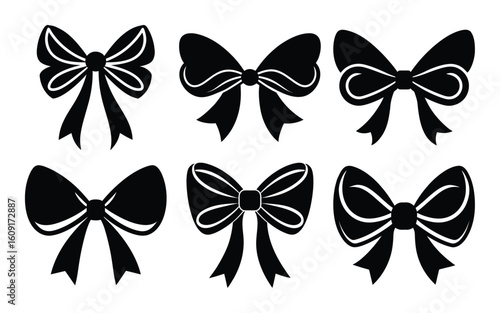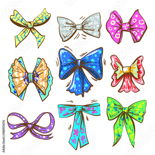 Vector set of vintage bows, ribbons in retro pop art comic style.