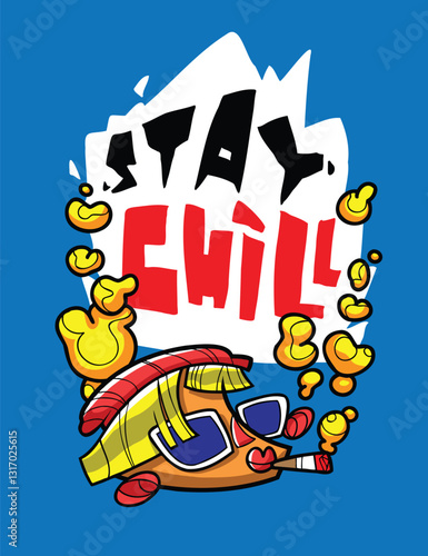 Rafting equipment and clothing store emblem. Vector flat style design illustration.