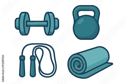 Vector gym icon set. Realistic 3d illustration isolated on white background.