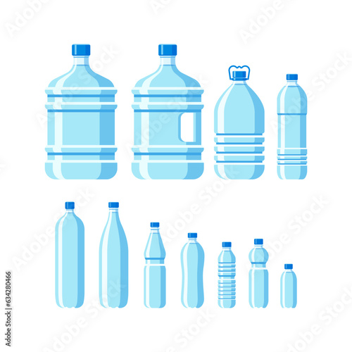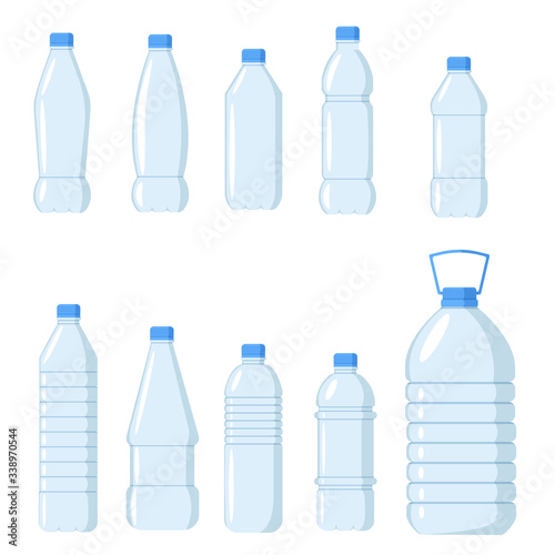 Vector realistic plastic water bottles set. Water packaging template collection.