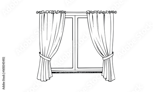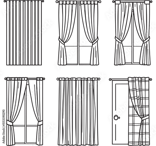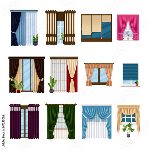 Vector window curtains and drapes set. Realistic illustration isolated on white background.