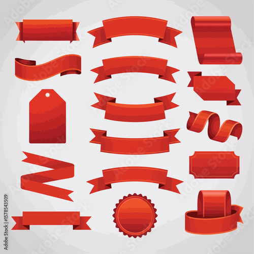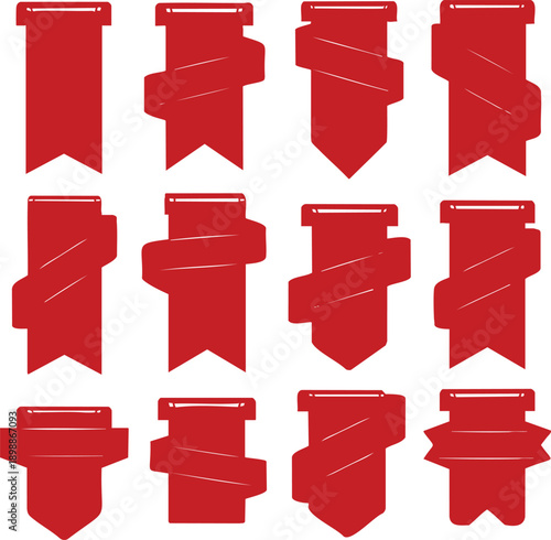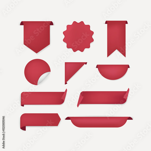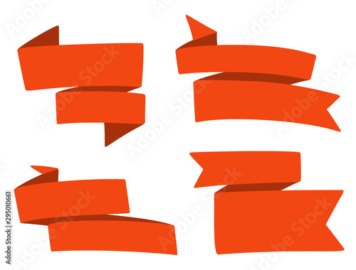 Vector set of paper winter holidays and winter sale banners. Red realistic ribbon banners with snow.