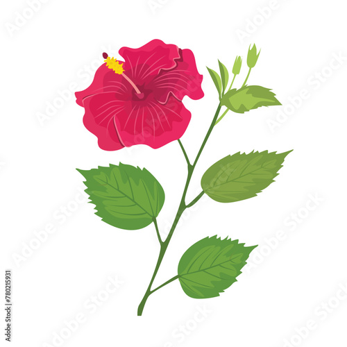 Vector red rose flower icon. single bud with petal and leaf on thorn stem isolated on white background. Romance and love beautiful symbol. Magical circus show accessory