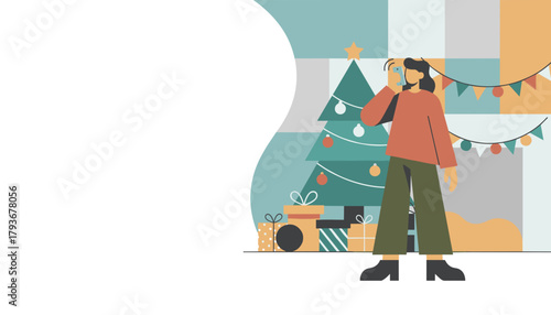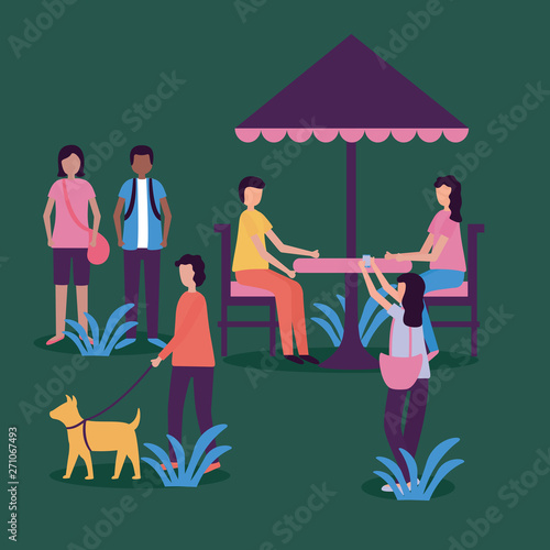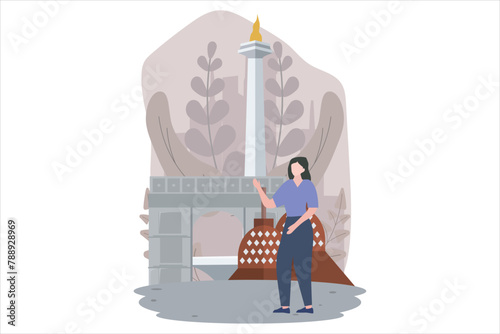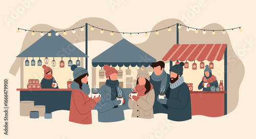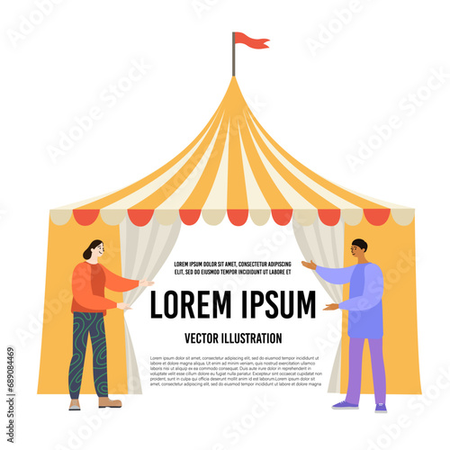 Reception in restaurant concept vector illustration in flat style. Restaurant interior and visitors man and woman near table with drink