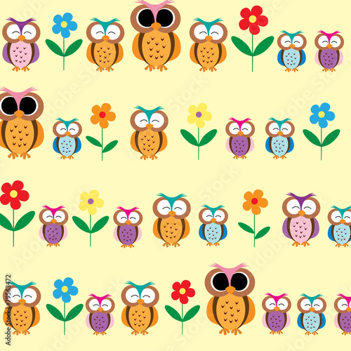 Vector seamless pattern with cute owl, hedgehog and deer in love holding flowers and hearts. Happy romantic animals background, wallpaper, fabric, wrapping paper.