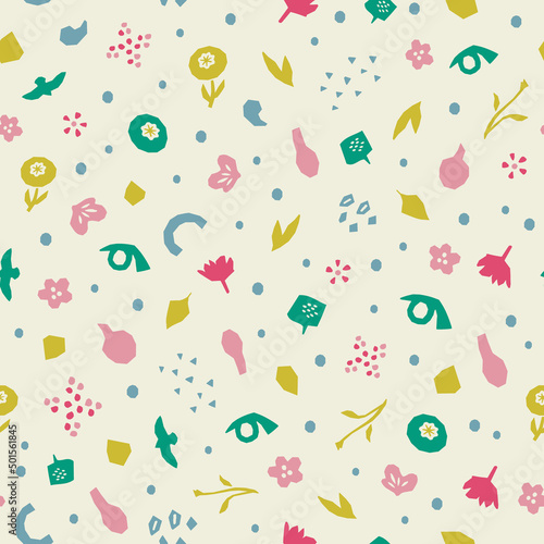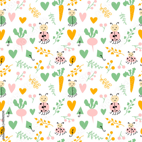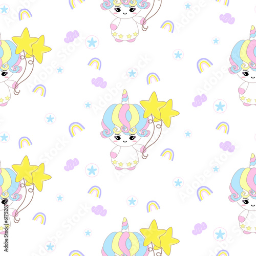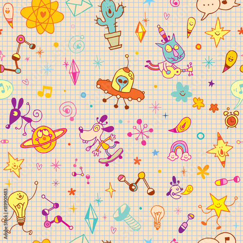 Vector seamless pattern with cute cats, autumn leaves, clouds with rain drops. Funny autumn cats background, wallpaper, fabric, wrapping paper.
