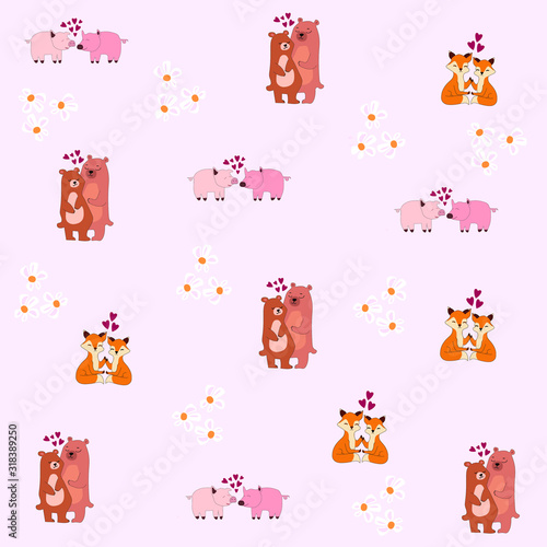 Vector seamless pattern with cute cats and autumn leaves. Funny autumn cats background, wallpaper, fabric, wrapping paper.