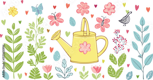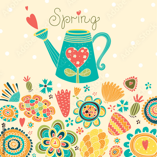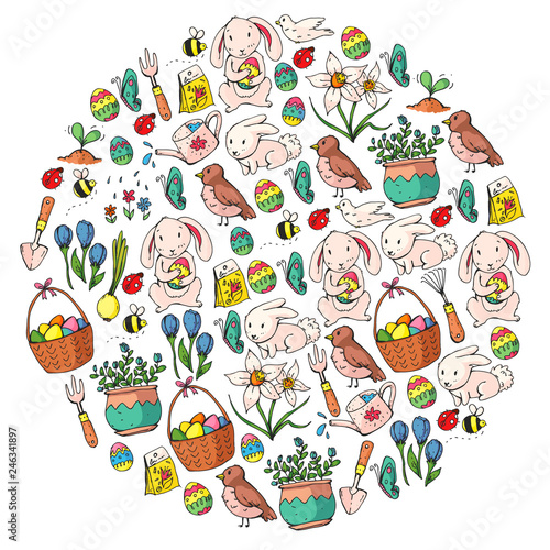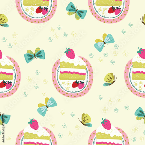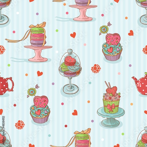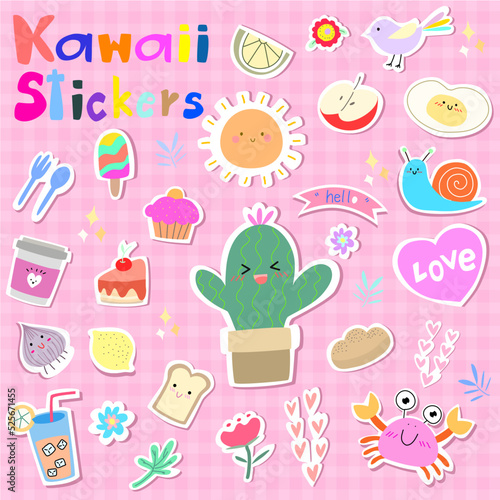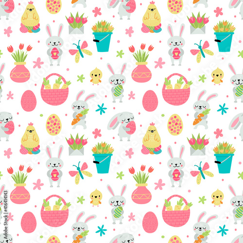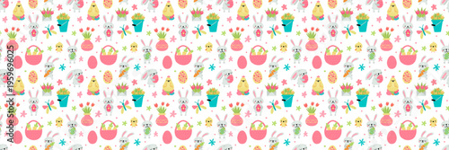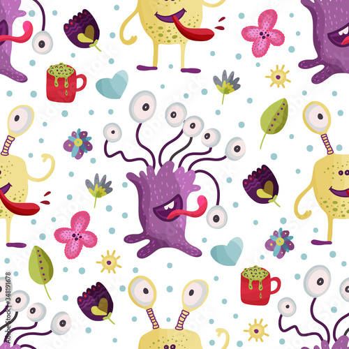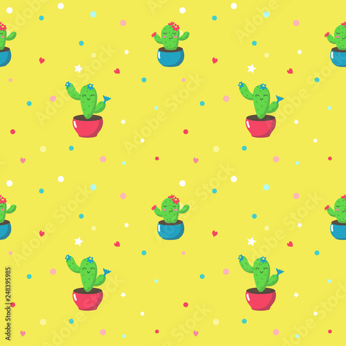 Vector seamless pattern with cute succulent kawaii cacti with funny faces in pots. Floral cactus background, wallpaper, fabric, wrapping paper.