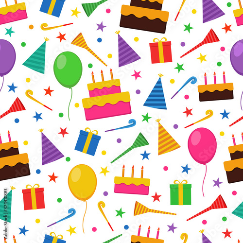 Vector seamless pattern with cute cats in love. Happy romantic kittens with hearts background, wallpaper, fabric, wrapping paper.