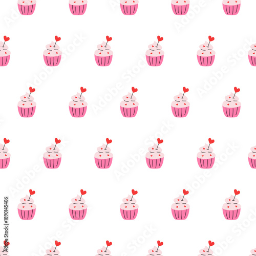 Vector seamless pattern with cute couple of cats in love. Happy romantic hugging kittens with hearts background, wallpaper, fabric, wrapping paper.