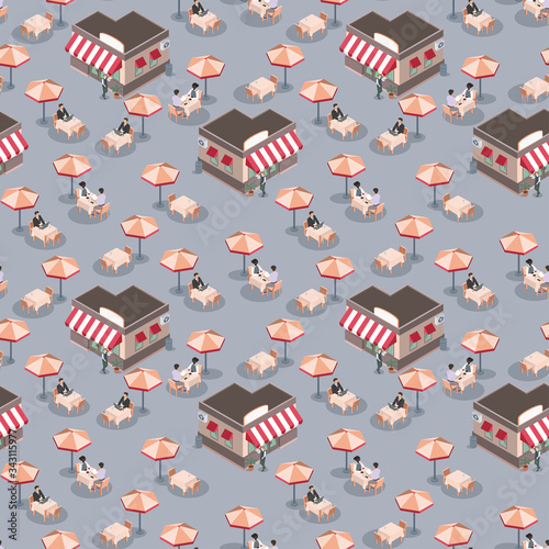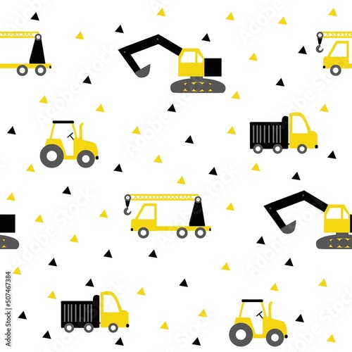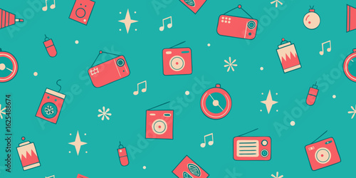 Vector seamless pattern with cute raccoon eating popcorn. Funny raccoon background, wallpaper, fabric, wrapping paper.