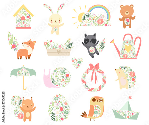 Vector seamless pattern with cute animals deer, raccoon and owl ice skating. Winter background, wallpaper, fabric, wrapping paper.