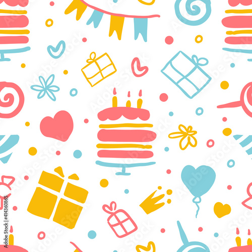 Vector seamless pattern with cute little girls, mythical creatures and fairy tale characters with wings reading book. Childish fairy background, wallpaper, fabric, wrapping paper.
