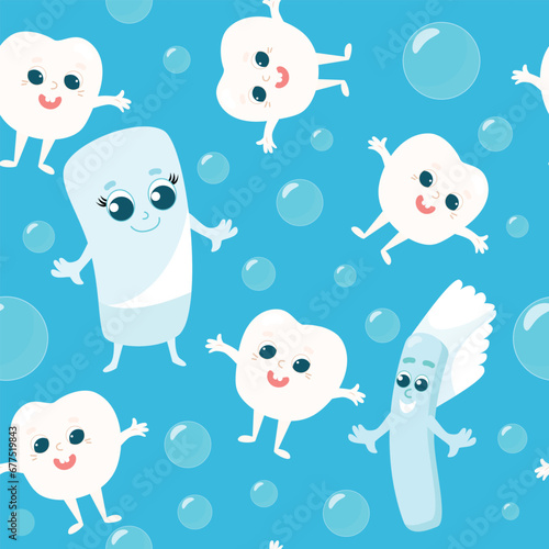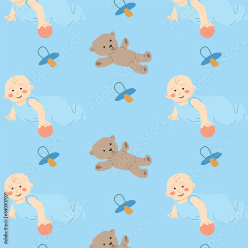 Vector seamless pattern with cute little girls, mythical creatures and fairy tale characters with wings flying in the sky. Childish fairy background, wallpaper, fabric, wrapping paper.