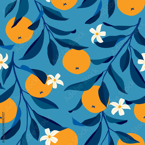 Vector seamless pattern with cute mermaids, marine animals. Beautiful swimming girls with crab, jellyfish, starfish, seashell seahorse. Childish mermaid background, wallpaper, fabric, wrapping paper.