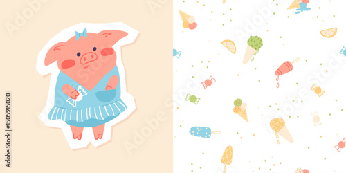 Vector seamless pattern with cute owl sitting on tree branch with cup of tea. Funny eating animals background, wallpaper, fabric, wrapping paper.