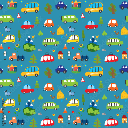 Vector seamless pattern with cute little bear, deer and raccon flying on airplane and biplane. Funny pilot animals background, wallpaper, fabric, wrapping paper.