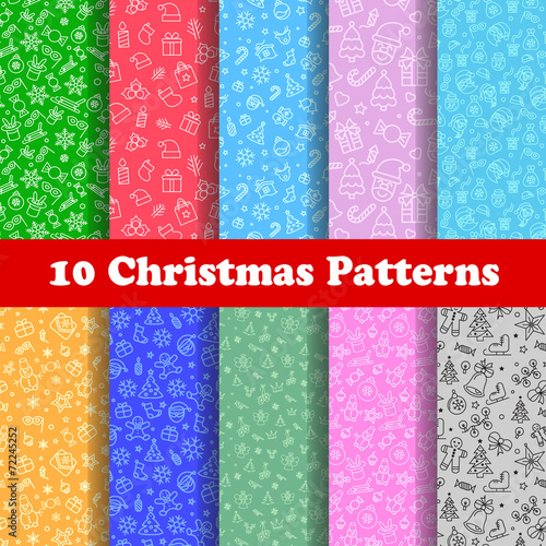 Vector set of 10 seamless floral patterns. Decorative flowers and design elements for textile, book covers, manufacturing, invitations, greeting cards, print, gift wrap.