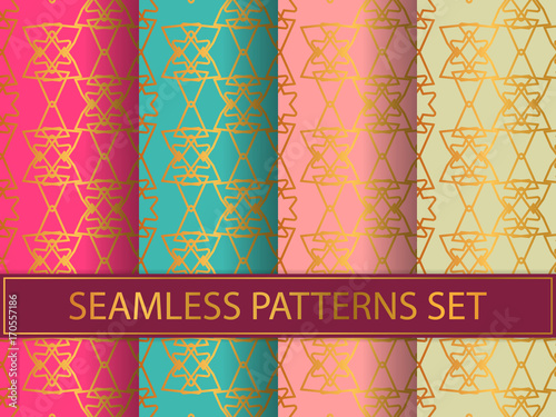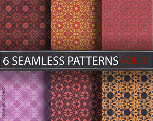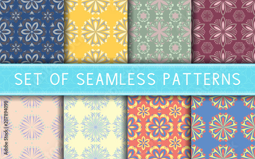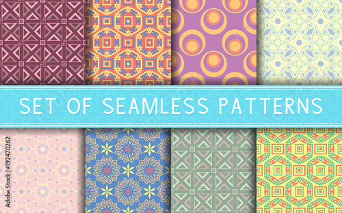 Vector set of 10 seamless mosaic patterns. Arabic tile texture with geometric ornament. Decorative and design elements for textile, book covers, manufacturing, wallpapers, print, gift wrap.