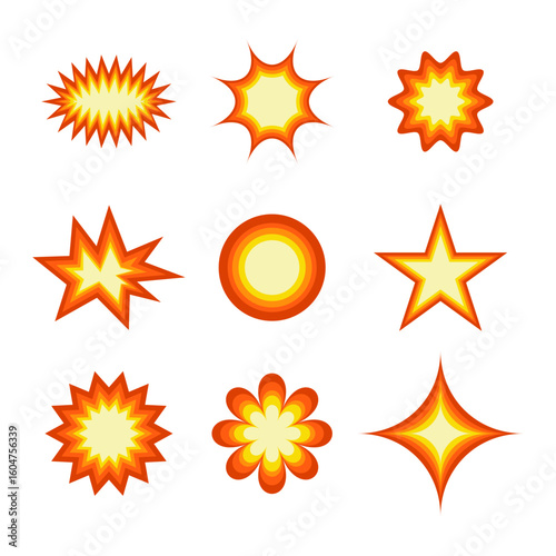 Vector set of abstract explosions in comic pop art style. Vector illustration. Design elements.