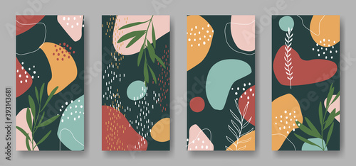Vector set of abstract hand painted backgrounds for social media stories design, wall decoration pattern, modern poster, prints. Abstract background illustrations.