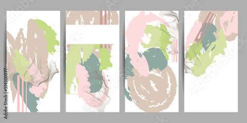 Vector set of abstract hand painted backgrounds for social media stories design, wall decoration pattern, modern poster, prints. Abstract background illustrations.