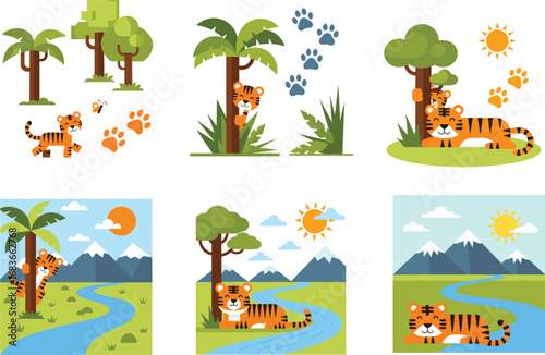 Vector set of aged people posters. Provision, walking dog, Relaxes and Grandmother flat style design elements.