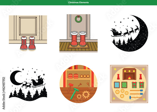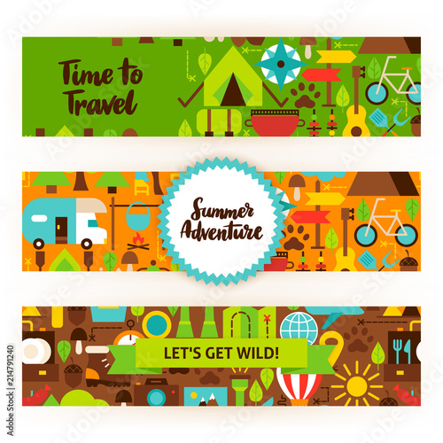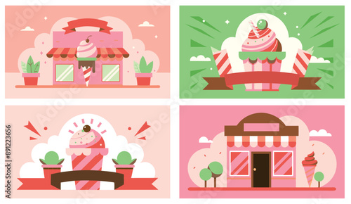 Vector set of amusement park concept posters, banners. Ferris wheel, Cotton candy, Ice cream and Shooting range design elements in flat style.