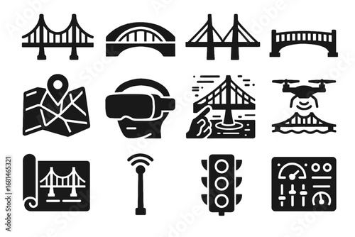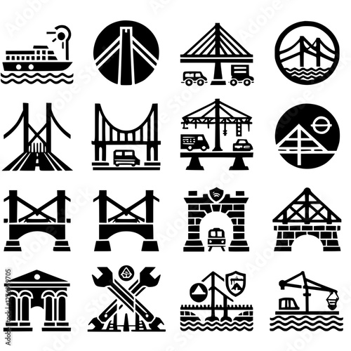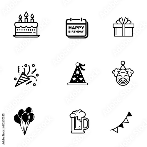 Vector set of amusement park isolated icons and objects. Black and white amusement park symbols and design elements. Attractions, carousel, wheel, ice cream cart.