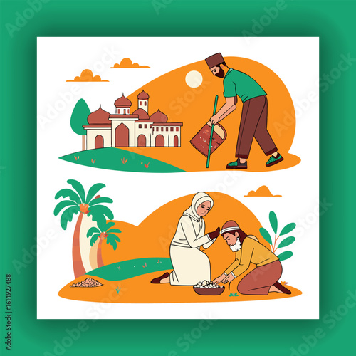 Vector set of archaeology concept posters. Metal detector, Archaeologist, Artifacts and Research design elements in flat style