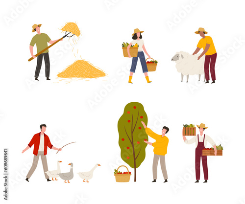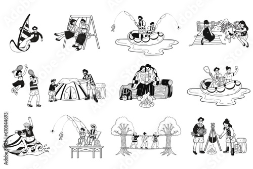 Vector set of wild north arctic people and animals icons isolated, flat style design elements. Eskimo characters fishing, cooking on the open fire, playing drum and dancing.