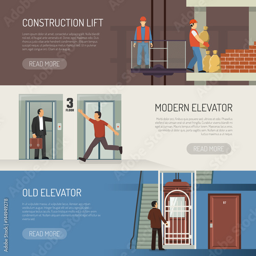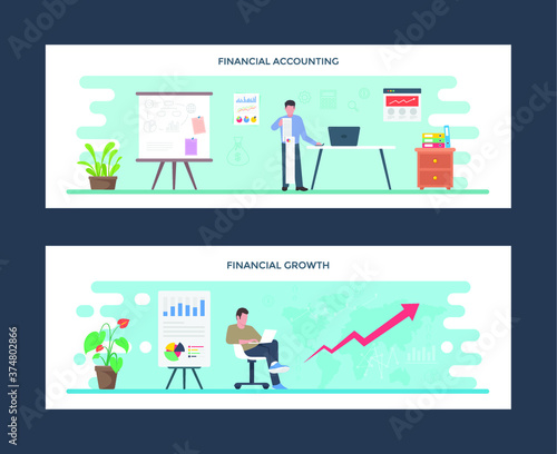Vector set of banking concept horizontal banners. Cashbox and waiting hall, Reliable protection and safe, Self-service area design elements in flat style.