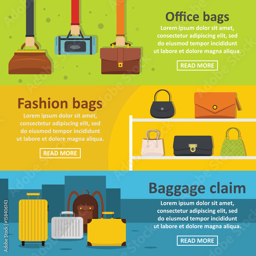 Vector set of horizontal banners with interior design bathroom, furniture and accessories for bath, place for text, flat style.