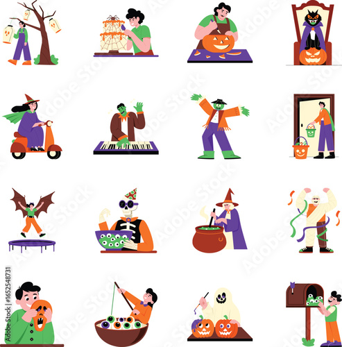 Boys and girls playing electric guitar and piano on stage. Young man playing acoustic guitar near campfire. Vector set of banners with young musicians, flat style
