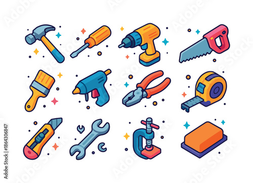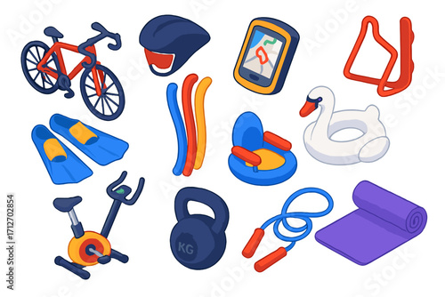 Vector set of bicycle parts isolated isometric icons. Bicycle objects and design elements. Bike repair gears. Stars, wheels, helmet, seat.
