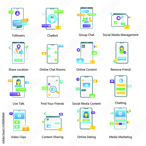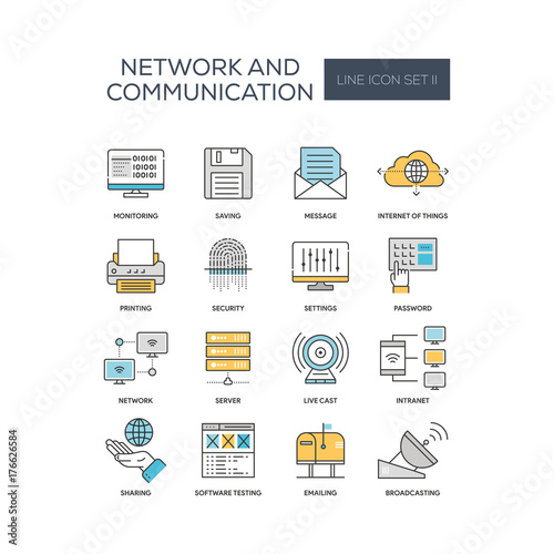 Vector set of business and office icons in thin line style. Online chat and customer support. Website UI and mobile web app icon. Outline design illustration
