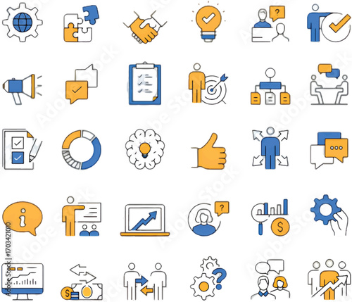 Vector set of business, finance and cyber security icons in thin line style. Website UI and mobile web app icon. Outline design illustration
