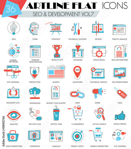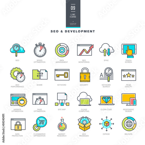 Vector set of business, marketing and advertising icons in thin line style. Website UI and mobile web app icon. Outline design illustration