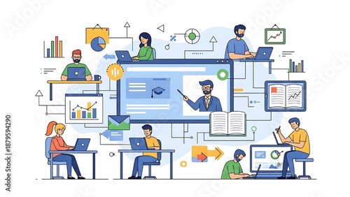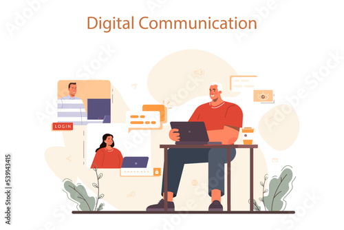 Vector set of business people square posters. Conference, Presentation, Deal and Contract flat style design elements.