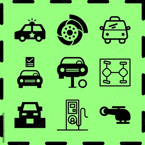 Vector set of car parking square posters. Parking, Evacuator, Guard and Fine flat style design elements.