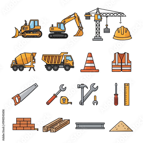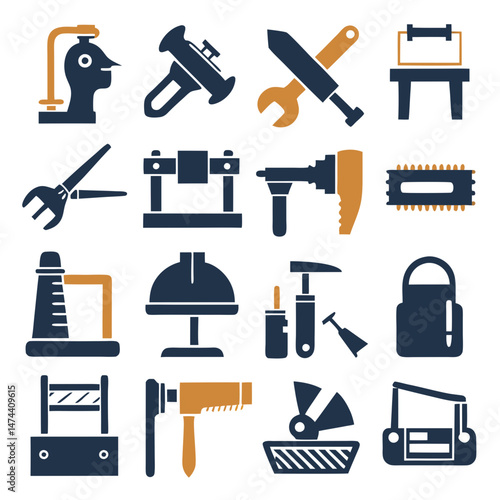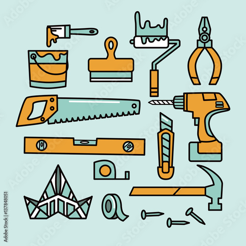 Vector set of carpenter tools and instruments in flat style. Design elements and icons isolated on white background. Home construction repair tools.