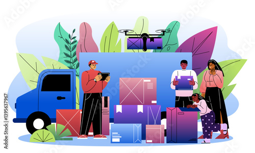 Vector set of cars concept posters, banners. Car show, car shop, parking lot with sellers, buyers, drivers flat style design elements.