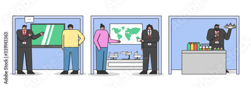 Vector set of coffee house concept posters, banners. Barista, Menu, Coffee house and Coffee to go design elements in flat style.