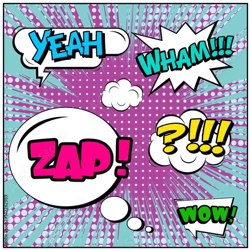 Vector set of comic text. Illustration in pop art style. Comic speech bubbles for different emotions and sound effects