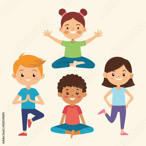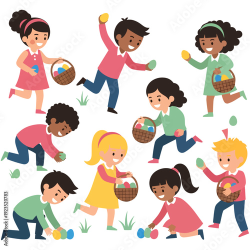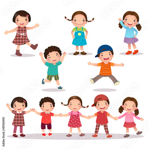 Vector illustration of different nationalities kinds. Cartoon characters. Smiling, joyful boys and girls. Set of children icons