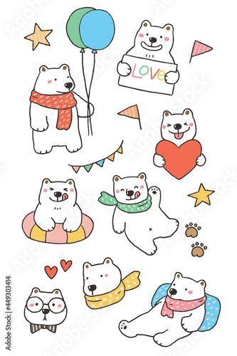 Pirate icon set. Vector illustration of cute animals panda, raccoon, fox in pirate hats, ship with pirate flags, jellyfish with eye patch and other marine items isolated on white background.
