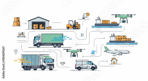 Vector set of delivery posters, banners. Logistics transportation. Delivery by plane, by truck and by ship flat style design elements for cargo services advertising.