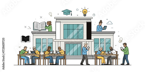 Vector set of family concept design elements in flat style. Parents cooking, walking in the park with their children, reading bedtime stories. Grandparents taking rest at fireplace. Family lifestyle.
