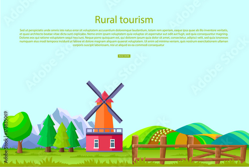 Vector set of farm horizontal banners. Agriculture on the farm, Harvest of wheat. Manufacture of flour and Animals on the farm flat style design elements.