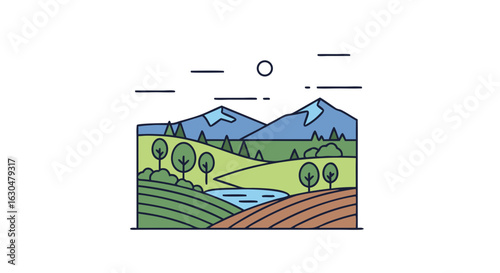 Vector set of farming posters, banners. Sickle, Mill, Plow and Hay design elements in flat style.